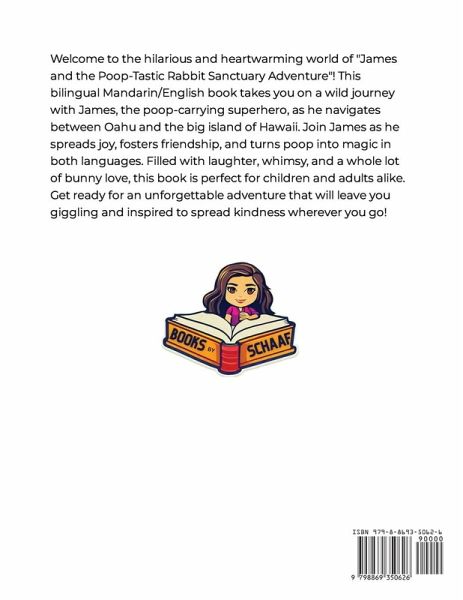Welcome to the hilarious and heartwarming world of "James and the Poop-Tastic Rabbit Sanctuary Adventure"! This bilingual Mandarin/English book takes you on a wild journey with James, the poop-carrying superhero, as he navigates between Oahu and the big island of Hawaii. Join James as he spreads joy, fosters friendship, and turns poop into magic in both languages. Filled with laughter, whimsy, and a whole lot of bunny love, this book is perfect for children and adults alike. Get ready for an unforgettable adventure that will leave you giggling and inspired to spread kindness wherever you go!