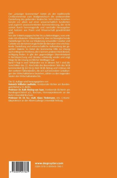 Der 'Leipziger Kommentar' bietet als der traditionelle Großkommentar zum Strafgesetzbuch die umfassendste Darstellung des geltenden Strafrechts. Sein hohes Ansehen beruht vor allem auf einer wissenschaftlich fundierten und zugleich praxisorientierten Kommentierung, die nicht zuletzt durch hervorragende und namhafte Herausgeber und Autoren aus Praxis und Wissenschaft gewährleistet wird.