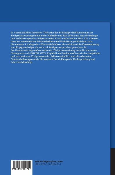 Die Kommentierung umfasst neben der Zivilprozessordnung auch die relevanten Nebengesetze (wie EGZPO, GVG, KapMuG und MediationsG) sowie das europäische und internationale Zivilprozessrecht. Selbstverständlich sind alle relevanten Gesetzesänderungen sowie die neuesten Entwicklungen in Rechtsprechung und Lehre berücksichtigt.
