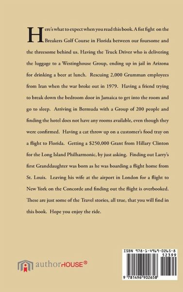 Here's what to expect when you read this book. Roy Fugazy getting beat up on the Breakers Golf Course in Florida while playing golf with Larry and American Airlines Executives. Having the Truck Driver who is delivering the luggage to a Westinghouse Group, ending up in jail in Arizona for drinking a beer at lunch. Rescuing 2,000 Grumman employees from Iran when the war broke out in 1979. Having a friend trying to break down the bedroom door in Jamaica to get into the room and go to sleep. Arriving in Bermuda with a Group of 200 people and finding the hotel does not have any rooms available, even though they were confirmed. Having a cat throw up on a customer's food tray on a flight to Florida. Getting a $250,000 Grant from Hillary Clinton for the Long Island Philharmonic, by just asking. Finding out his first Granddaughter was born as he was boarding a flight home from St. Louis. Leaving his wife at the airport in London for a flight to New York on the Concorde and finding out the flight is overbooked. These are just some of the Travel stories, all true, that you will find in this book. Hope you enjoy the ride.