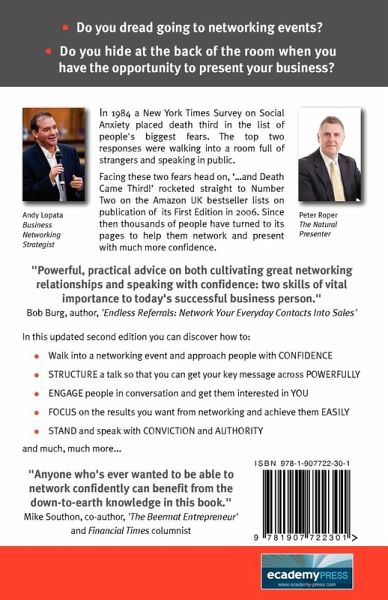 ...and death came third! The definitive guide to networking and speaking in public. Do you dread going to networking events? Do you hide at the back of the room when you have the opportunity to present your business? In 1984 a New York Times Survey on Social Anxiety placed death third in the list of people's biggest fears. The top two responses were walking into a room full of strangers and speaking in public. Facing these two fears head on, '...and death came third!' rocketed straight to Number Two on the Amazon UK bestseller lists on publication of its First Edition in 2006. Since then thousands of people have turned to its pages to help them network and present with much more confidence. In this updated second edition you can discover how to: Walk into a networking event and approach people with CONFIDENCE, STRUCTURE a talk so that you can get your key message across POWERFULLY, ENGAGE people in conversation and get them interested in YOU, FOCUS on the results you want from networking and achieve them EASILY, STAND and speak with CONVICTION and AUTHORITY and much, much more...Brought to you by Andy Lopata, Business Networking Strategist and Peter Roper, The Natural Presenter.