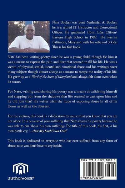 Sit back... are you ready... for this journey? I wasn't. When I first read Nates work, I was blown away...head spinning.. heart beating..emotions flowing. Immediately I thought this is a beautiful mind, truly, and I wanted more, and more. I wanted to read more, experience more. I wanted to know where does this genius come from? It comes from Nathaniel Booker, Sr. the Man, the Father, the Husband, Brother, Uncle, Son, the Poet, my Friend. It's so amazing the talent that lies within...but how blessed we are to have Nathaniel willing to share. Thank you Nate for sharing you gift with us! As we, you, take this journey, I will just say, hold on... or not... either way... Nate's ability to touch your heart and soul will prevail and you will for ever know the genius of Nathaniel Booker Sr. Thank you Nate.......... Debbie Holden, forever touched by the genius of You