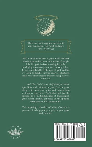 Golf is much more than a game. Golf has been called the sport that reveals the insides of people. Like life, golf is about avoiding hazards, developing consistency, and overcoming failure. In the unpredictable challenges of golf and life we learn to handle success, analyze situations, make wise choices under pressure, and persevere to the end....And Then God Created Golf gives you inside tips, hints, and pointers on your favorite game along with humorous quips and quotes from well-known golf pros. You'll also find that the discussions of the fundamentals of this complex game reveal practical guidance on the spiritual disciplines of the Christian life.