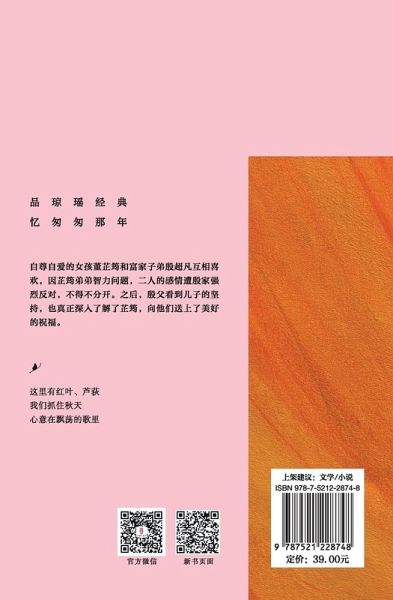 "¿¿¿¿¿¿¿¿¿¿¿¿¿¿¿¿¿¿¿¿¿ The classic work of Qiong Yao, a master of pure romance novels, 60th anniversary commemorative edition. ¿¿¿¿¿¿¿¿¿¿¿¿ ¿¿¿¿¿¿¿¿¿ ¿¿¿¿¿¿¿ ¿¿¿¿¿¿¿¿¿ ¿¿¿¿¿¿¿¿¿¿¿¿¿¿¿¿¿¿¿¿¿¿¿¿¿¿¿¿¿¿¿¿¿¿¿¿¿¿¿¿¿¿¿¿¿¿¿¿¿¿¿¿¿¿¿¿¿¿¿¿¿¿¿¿¿¿¿¿¿¿¿¿¿¿¿¿¿¿¿¿¿¿¿¿¿¿¿¿¿¿¿¿¿¿¿¿¿¿¿¿¿¿¿¿¿¿¿¿¿¿¿¿¿¿¿¿¿¿¿¿¿¿¿¿¿ Appreciating the classics of Qiongyao, reminiscing about the fleeting years! There are red leaves and reeds here. We seize the autumn. Heart is in the drifting song. Forcing Zhiyun to leave this city with her son, seeing Yin Chaofan's restless and listless appearance after losing his beloved partner, the parents finally realized their blindness and one sidedness. The two moved the stubborn and biased parents with their true feelings for each other, and wealthy children may not necessarily be playboys, and poor women may not necessarily only pursue money. They happily combined together. ¿¿¿¿ Brief Introduction ¿¿¿¿¿¿¿¿¿¿¿¿¿¿¿¿¿¿¿¿¿¿¿¿¿¿¿¿¿¿¿¿¿¿¿¿¿¿¿¿¿¿¿¿¿¿¿¿¿¿¿¿¿¿¿¿¿¿¿¿¿¿¿¿¿¿¿¿¿¿¿¿¿¿¿¿¿¿¿¿¿¿¿¿¿¿¿¿¿ Dong Zhiyun, a girl with self-respect and self love, and Yin Chaofan, a son of a wealthy family, liked each other. However, due to Zhiyun's brother's intellectual problems, their relationship was strongly opposed by the Yin family and they had to separate. Afterwards, Father Yin saw his son's persistence and truly gained a deeper understanding of Zhiyun, sending them beautiful blessings. ¿¿¿¿ Author Introduction ¿¿¿¿¿¿¿¿¿¿¿¿¿¿¿¿¿¿¿¿¿¿¿¿¿¿¿¿¿¿¿¿¿¿¿¿¿¿¿¿¿¿¿¿¿¿¿¿¿¿¿¿¿¿¿¿¿¿¿¿¿¿¿¿¿¿¿¿¿¿ Qiong Yao, originally named Chen Zhe, was born in Chengdu, Sichuan in 1938 and came from a scholarly family. In 1949, she followed her father Chen Zhiping from mainland China to Taiwan to start her writing career, and later entered the film and television production industry. ¿¿¿¿¿¿¿¿¿¿¿¿¿¿¿¿¿¿¿¿¿¿¿¿¿¿¿¿¿¿¿¿¿¿¿¿¿¿¿¿¿¿¿¿¿¿¿¿¿¿¿¿¿¿¿¿¿¿¿¿¿¿¿¿¿¿¿¿¿¿¿¿¿¿¿¿¿¿¿¿¿¿¿¿¿¿¿¿¿¿¿¿¿¿¿¿¿¿¿¿¿¿¿¿¿¿¿¿¿¿¿¿¿ At the age of sixteen, Qiong Yao published the novel ""Cloud Shadow"" under the pen name ""Xinru"", and at the age of twenty-five, she published her first novel ""Outside the Window"". For many years, she has been tirelessly writing, with representative works such as ""Whispers Of Misty Rain"", ""My Fair Princess"", ""Fantasies Behind The Pearly Curtain"", ""Deep In The Courtyard"", etc. Many of her classic works have also been adapted into movies and TV dramas, which have had a profound impact and become memories of a generation's youth