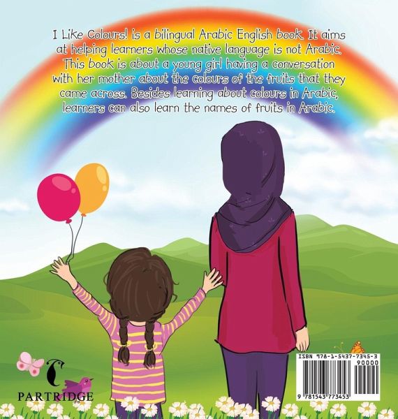 I Like Colours! is a bilingual Arabic English book. It aims at helping learners whose native language is not Arabic. This book is about a young girl having a conversation with her mother about the colours of the fruits that they came across. Besides learning about colours in Arabic, learners can also learn the names of fruits in Arabic.