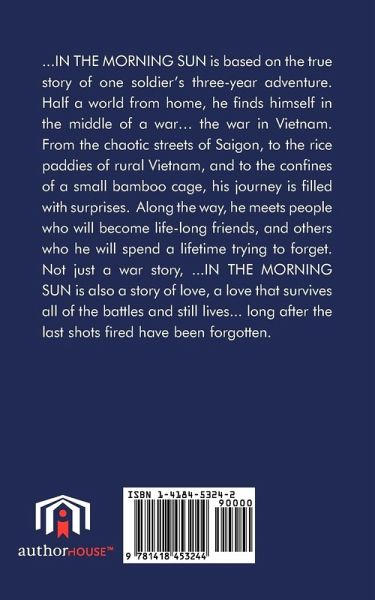 IN THE MORNING SUN is based on the true story of one soldier's three-year adventure. Half a world from home, he finds himself in the middle of a war. the war in Vietnam. From the chaotic streets of Saigon, to the rice paddies of rural Vietnam, and to the confines of a small bamboo cage, his journey is filled with surprises. Along the way, he meets people who will become life-long friends, and others who he will spend a lifetime trying to forget. Not just a war story, ... IN THE MORNING SUN is also a story of love, a love that survives all of the battles and still lives... long after the last shots fired have been forgotten.