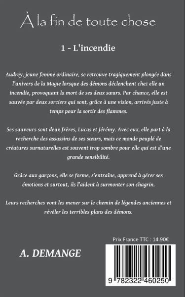 Audrey, jeune femme ordinaire, se retrouve tragiquement plongée dans l'univers de la Magie lorsque des démons déclenchent chez elle un incendie, provoquant la mort de ses deux soeurs. Par chance, elle est sauvée par deux sorciers qui sont, grâce à une vision, arrivés juste à temps pour la sortir des flammes.Ses sauveurs sont deux frères: Lucas et Jérémy. Avec eux, elle part à la recherche des assassins de ses soeurs, mais ce monde peuplé de créatures surnaturelles est souvent trop sombre pour elle, qui est d'une grande sensibilité.Grâce aux garçons, elle se forme, s'entraîne, apprend à gérer ses émotions et surtout, ils l'aident à faire son deuil.Leurs recherches vont les mener sur le chemin de légendes anciennes et révéler les terribles plans des démons.