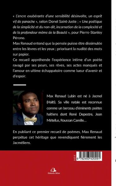 "L'encre exubérante d'une sensibilité désinvolte, un esprit vif de panache", selon Donel Saint-Juste ; "Une poétique de la simplicité et du non-dit, incarnation de la complexité et de la profondeur même de la Beauté", pour Pierre-Stanley Pérono. Max Renaud Lubin entend que la pensée puisse être dissimulée entre les lèvres et les yeux ; priorisant la nudité des mots sur papier. À la lisière du rêve appréhende l'expérience intime d'un poète ravagé par ses peurs, ses rêves, ses actes manqués et l'amour en ultime échappatoire comme lueur d'avenir et d'espoir.