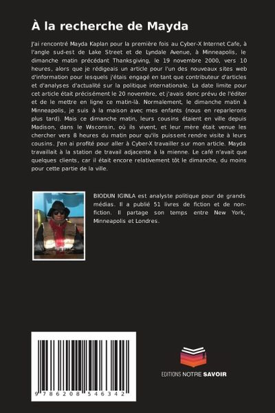 J'ai rencontré Mayda Kaplan pour la première fois au Cyber-X Internet Cafe, à l'angle sud-est de Lake Street et de Lyndale Avenue, à Minneapolis, le dimanche matin précédant Thanksgiving, le 19 novembre 2000, vers 10 heures, alors que je rédigeais un article pour l'un des nouveaux sites web d'information pour lesquels j'étais engagé en tant que contributeur d'articles et d'analyses d'actualité sur la politique internationale. La date limite pour cet article était précisément le 20 novembre, et j'avais donc prévu de l'éditer et de le mettre en ligne ce matin-là. Normalement, le dimanche matin à Minneapolis, je suis à la maison avec mes enfants (nous en reparlerons plus tard). Mais ce dimanche matin, leurs cousins étaient en ville depuis Madison, dans le Wisconsin, où ils vivent, et leur mère était venue les chercher vers 8 heures du matin pour qu'ils puissent rendre visite à leurs cousins. J'en ai profité pour aller à Cyber-X travailler sur mon article. Mayda travaillait à la station de travail adjacente à la mienne. Le café n'avait que quelques clients, car il était encore relativement tôt le dimanche, du moins pour cette partie de la ville.