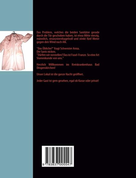 Das Problem, welches die beiden Sanitäter gerade durch die Tür geschoben haben, ist etwa Mitte vierzig, männlich, strunzsternhagelvoll und stinkt fünf Meter gegen den Wind nach Alk."Das Übliche?" fragt Schwester Anna.Die Sanis nicken."Dürfen wir vorstellen? Das ist Fusel-Franze. So eine Art Stammkunde von uns." Herzlich Willkommen im Kreiskrankenhaus Bad Dingenskirchen! Unser Lokal ist die ganze nacht geöffnet. Jeder Gast ist gern gesehen, egal ob Kasse oder Privat.Dies ist der ganz normale Alltagswahnsinn im Kreiskrankenhaus Bad Dingenskirchen.Wir Ärzte sind keine Halbgötter mehr. Eigentlich waren wir es ja nie gewesen. So steckt der Alltag in einem kleinen Krankenhaus - irgendwo in der Provinz - voller spannender Geschichten.Manchmal ist es bittere Realsatire.Dies ist kein Arztroman! Dies ist der ganz normale Alltagswahnsinn!
