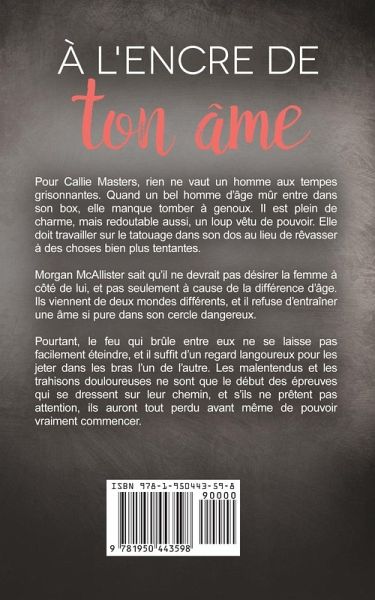 Pour Callie Masters, rien ne vaut un homme aux tempes grisonnantes. Quand un bel homme d'âge mûr entre dans son box, elle manque tomber à genoux. Il est plein de charme, mais redoutable aussi, un loup vêtu de pouvoir. Elle doit travailler sur le tatouage dans son dos au lieu de rêvasser à des choses bien plus tentantes. Morgan McAllister sait qu'il ne devrait pas désirer la femme à côté de lui, et pas seulement à cause de la différence d'âge. Ils viennent de deux mondes différents, et il refuse d'entraîner une âme si pure dans son cercle dangereux. Pourtant, le feu qui brûle entre eux ne se laisse pas facilement éteindre, et il suffit d'un regard langoureux pour les jeter dans les bras l'un de l'autre. Les malentendus et les trahisons douloureuses ne sont que le début des épreuves qui se dressent sur leur chemin, et s'ils ne prêtent pas attention, ils auront tout perdu avant même de pouvoir vraiment commencer.
