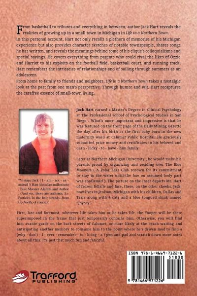 Life in a Northern Town takes the reader on a trip down Nostalgia Lane and veers off, at times, to move in and out of all its nooks and crannies, creeks and fields, metes and bounds, longitudes and latitudes to discover-and be saturated in-the joy of its peripheral travels. The author lingers for mere minutes at a time before moving on to a continuous tour where the rich textured anecdotes dynamically coat the broad paintings that capture your attention with sometimes poignant and sentimental, but mostly inherently entertaining grains along the way. Another turn, another divergent, but amusing surprise. He presents that box of chocolates with him in a roulette-shaped interior with an inordinate amount of selections that offer a variety of innards and consistencies, a number of them with an extraordinary supply of nuts. All are delectable in their own right. So enjoy them while you're looking around at all that stuff. Intentional is it's sectional . . . perfect bathroom-reading friendly passages that allow for less commitment and advantage of that variable pace, not to mention a 100 proof shot of delight. PG Family-Friendly Approved.