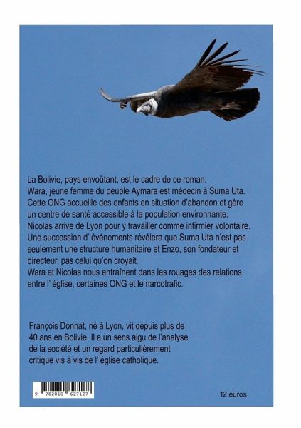 La Bolivie, pays envoûtant est le cadre de ce roman. WAra, jeune femme du peuple Aymara, travaille comme médecin à Suma Uta. Elle y rencontre Nicolas, né à Lyon, infirmier volontaire de l'ong Suma Uta qui accueille des enfants en situation d'abandon et gère un centre de santé accessible à la population environnante. Une succession d'évènements révèle que Suma Uta n'est pas seulement une structure humanitaire... Enzo, son fondateur et directeur, y jouera un rôle pervers. Wara et Nicolas nous entraînent dans les mécanismes d'imbrication des relations entre l'Église, certaines ONGs et le narcotrafic, tout cela sur fond de pédophilie et de corruption généralisée.
