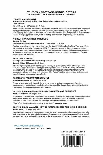 1 Introduction: Opportunity, Risk and Benefit.- Market opportunities.- Risk versus benefit.- Timing.- The competitive approach.- 2 Concept to Launch: The Development Cycle.- Project phases.- Idea.- Feasibility study.- Laboratory model.- Development.- Production engineering.- Production.- Trials.- Launch.- 3 Setting the Goal.- Projects.- The project leader.- Decision making.- Defining the need.- The requirement specification.- Goal setting.- Managing change.- Roles.- Product issues.- Single point responsibility.- Department versus function.- Status and role.- Motivation.- 4 Seeing in the Dark: The Need to Plan.- Why plan?.- Planning tools.- Planning techniques.- Network notation.- Creating a plan.- Planning in practice.- The critical path.- Resourcing.- What if...?.- Squeezing the plan.- Working with plans.- 5 Organising for Success.- Meetings.- Specifications.- Document control.- Managing change.- Working together.- Purchasing.- Reviews.- 6 Cost and Time.- Estimating.- The cost of change.- Managing cost and time.- Tracking expenditure.- Product cost.- 7 Understanding Technologies.- Managing technology.- Electronics.- Software.- New technologies.- Appendix A: Document Control.- Appendix B: Change Control.- Appendix C: Functional Specification.- Appendix D: Review Guidlines.- Appendix E: Requirement Specification Format.