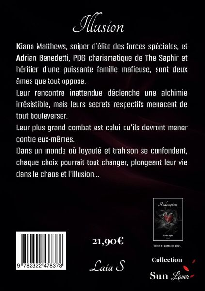 Kiana Matthews, sniper d'élite des forces spéciales, et Adrian Benedetti, PDG charismatique de The Saphir et héritier d'une puissante famille mafieuse, sont deux âmes que tout oppose. Leur rencontre inattendue déclenche une alchimie irrésistible, mais leurs secrets respectifs menacent de tout bouleverser. Leur plus grand combat est celui qu'ils devront mener contre eux-mêmes. Dans un monde où loyauté et trahison se confondent, chaque choix pourrait tout changer, plongeant leur vie dans le chaos et l'illusion...