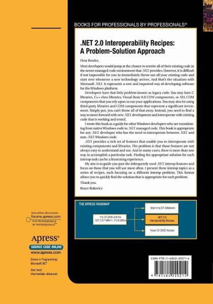 The only recipe-style book on the subject, .NET 2.0 Interoperability Recipes: A Problem-Solution Approach guides Windows developers who are transitioning from native Windows code to .NET managed code.