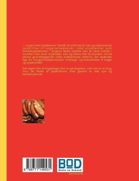 "... noget med sojabønner" består af omkring 50 nye og inspirerende opskrifter til vegetarkøkkenet, med sojabønner som hovedingrediensen. I bogens første kapitler kan du blive indviet i, hvordan man laver sojamælk, tofu og okara helt fra bunden. Ud fra denne grundlæggende viden præsenteres retterne, der spænder lige fra morgenmadsprodukter, middags- og frokostretter til kager og sojakonfekt. Det siges ofte at kogebøger blot er gentagelser, men her er en bog, hvor de fleste af opskrifterne med garanti er helt nye og banebrydende.