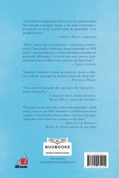 "À procura da felicidade foi adaptado para o cinema com grande sucesso, tendo no papel principal o ator Will Smith, indicado ao Oscar por sua atuação. Depare-se com a incrível jornada de Chris Gardner, de pai sem-teto a executivo milionário. Chris Gardner é um vendedor que, em tempos difíceis, junto com o filho pequeno, luta bravamente contra a pobreza. Assim, a luta diária da classe trabalhadora e dos menos favorecidos está retratada na obra. Quando fez 20 anos, Chris Gardner tinha acabado de sair da Marinha e tinha planos de seguir carreira em Medicina. Considerado um prodígio em pesquisa científica, ele surpreendeu a todos, inclusive a si mesmo, quando mudou de ideia. E assim escolheu uma carreira na área de finanças. Após encontrar uma posição inicial modesta em uma firma de prestígio, Gardner se viu envolvido em uma rede de circunstâncias que o levaram a viver nas ruas junto com o filho pequeno, que ainda engatinhava. Porém, em vez de se render ao desespero, pai e filho passaram quase um ano morando em abrigos e albergues. Enfrentavam filas para conseguir um prato de sopa e até mesmo dormiam em banheiros de estações de metrô. Até que, finalmente, ocorreu a transição do banheiro para a sala da diretoria. Hoje, Chris Gardner é o CEO da Gardner Rich e Company. Sua milionária firma de corretagem tem escritórios em Nova York, Chicago e San Francisco. "Apenas uma coisa para mim é mais importante que todas as outras: meu compromisso com meu filho. E essa é a nossa história", resume ele."
