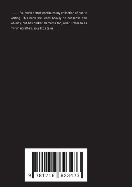a collection of poetic writing, mostly whimsical nonsense, but containing some darker elements, these I refer to as my vinaigrette's; sour little tales