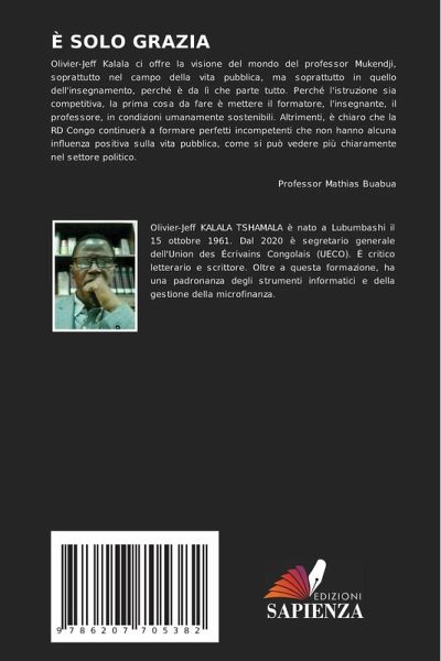 Olivier-Jeff Kalala ci offre la visione del mondo del professor Mukendji, soprattutto nel campo della vita pubblica, ma soprattutto in quello dell'insegnamento, perché è da lì che parte tutto. Perché l'istruzione sia competitiva, la prima cosa da fare è mettere il formatore, l'insegnante, il professore, in condizioni umanamente sostenibili. Altrimenti, è chiaro che la RD Congo continuerà a formare perfetti incompetenti che non hanno alcuna influenza positiva sulla vita pubblica, come si può vedere più chiaramente nel settore politico. Professor Mathias Buabua