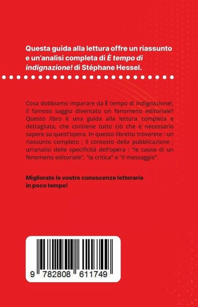 Cosa dobbiamo imparare da È tempo di indignazione!, il famoso saggio diventato un fenomeno editoriale? Questo libro è una guida alla lettura completa e dettagliata, che contiene tutto ciò che è necessario sapere su quest'opera. In questo libretto troverete - Un riassunto completo - Il contesto della pubblicazione - Un'analisi delle specificità dell'opera: le cause di un fenomeno editoriale, la critica e il messaggio Un'analisi di riferimento per comprendere rapidamente il significato dell'opera.