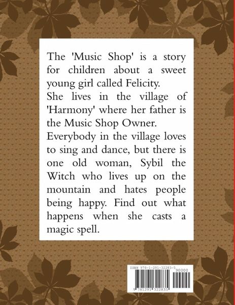 The story of Felicity, a little girl who lives in the village of Harmony. Music plays a very big part in their lives. Her Father is the Music Shop Owner. Everyone loves to sing and dance except for grumpy, nasty Sybil the witch who lives up on top of the mountain. She casts a spell to put an end to all music and song. Can Felicity save her Father and the village?