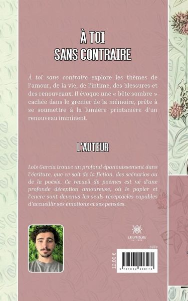 Loïs Garcia trouve un profond épanouissement dans l¿écriture, que ce soit de la fiction, des scénarios ou de la poésie. Ce recueil de poèmes est né d¿une profonde déception amoureuse, où le papier et l¿encre sont devenus les seuls réceptacles capables d¿accueillir ses émotions et ses pensées.