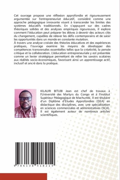 Cet ouvrage propose une réflexion approfondie et rigoureusement argumentée sur l'entrepreneuriat éducatif, considéré comme une approche pédagogique innovante visant à transcender les limites des systèmes éducatifs traditionnels. En s'appuyant sur des cadres théoriques solides et des analyses empiriques rigoureuses, il explore comment l'éducation peut préparer les élèves à devenir des acteurs clés du changement, capables de relever les défis contemporains et de saisir les opportunités dans un monde en constante mutation.À travers une analyse croisée des théories éducatives et des expériences pratiques, l'ouvrage examine les moyens de développer des compétences transversales essentielles telles que la créativité, la pensée critique et la collaboration. L'éducation entrepreneuriale y est présentée comme un levier stratégique permettant de relier les savoirs scolaires aux réalités socio-économiques, favorisant ainsi un apprentissage actif, inclusif et ancré dans la pratique.