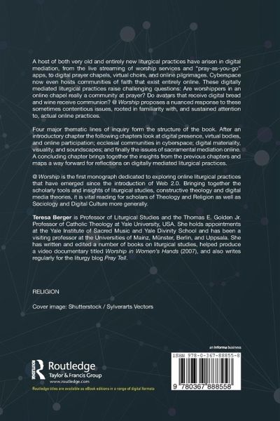 @ Worship is the first monograph dedicated to exploring online liturgical practices that have emerged since the introduction of Web 2.0. Bringing together the scholarly tools and insights of liturgical studies, constructive theology and digital media theories, it is vital reading for scholars of Theology and Religion with as well as Sociology and Digital Culture more generally.
