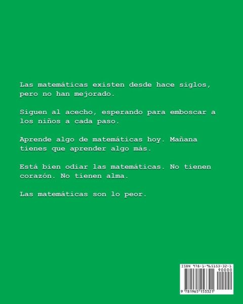 Se trata de una visión absurda de las matemáticas para niños a los que no les gustan nada las matemáticas. El libro se burla de todos los conceptos matemáticos, desde la suma hasta el cálculo, y también de algunos matemáticos. Y se lo merecen. This is a silly look at mathematics for kids who do not like mathematics at all. The book makes fun of every math concept, from addition to calculus and quite a few mathematicians as well. And they deserve it.