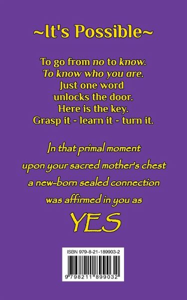 As simple as it is timeless, here is a Parable of Possibility that says to any and all who will listen to its sage guidance: YES. Re-discover how to say and feel YES, to Life and a fuller, brighter way of living it with reverence, radiance and humility. And Joy. It's possible! Learn the sacred Prayer of I AM, and ring once again, every day, in the harmony and light of YES! And then pass it on to another, waiting to discover YES!