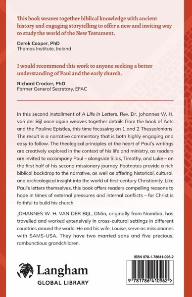 In this second installment of A Life in Letters, Rev. Dr. Johannes W. H. van der Bijl once again weaves together details from the book of Acts and the Pauline Epistles, this time focussing on 1 and 2 Thessalonians. The result is a narrative commentary that is both highly engaging and easy to follow. The theological principles at the heart of Paul's writings are creatively explored in the context of his life and ministry, as readers are invited to accompany Paul - alongside Silas, Timothy, and Luke - on the first half of his second missionary journey. Footnotes provide a rich biblical backdrop to the narrative, as well as offering historical, cultural, and archeological insight into the world of first-century Christianity. Like Paul's letters themselves, this book offers readers compelling reasons to hope in times of external pressures and internal conflicts - for Christ is faithful to build his church.