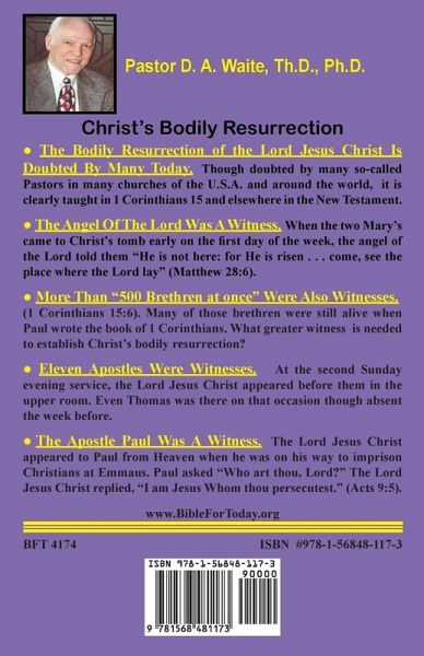 The Bodily Resurrection of the Lord Jesus Christ Is Doubted By Many Today. Though doubted by many so-called Pastors in many churches of the U.S.A. and around the world, it is clearly taught in 1 Corinthians 15 and elsewhere in the New Testament. The Angel Of The Lord Was A Witness. When the two Mary's came to Christ's tomb early on the first day of the week, the angel of the Lord told them "He is not here: for He is risen . . . come, see the place where the Lord lay" (Matthew 28:6). More Than "500 Brethren at once" Were Also Witnesses. (1 Corinthians 15:6). Many of those brethren were still alive when Paul wrote the book of 1 Corinthians. What greater witness is needed to establish Christ's bodily resurrection? Eleven Apostles Were Witnesses. At the second Sunday evening service, the Lord Jesus Christ appeared before them in the upper room. Even Thomas was there on that occasion though absent the week before. The Apostle Paul Was A Witness. The Lord Jesus Christ appeared to Paul from Heaven when he was on his way to imprison Christians at Emmaus. Paul asked "Who art thou, Lord?" The Lord Jesus Christ replied, "I am Jesus Whom thou persecutest." (Acts 9:5).