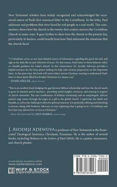 New Testament scholars have widely recognized and acknowledged the occasional nature of Paul's first canonical letter to the Corinthians. In the letter, Paul addresses real problems that were faced by real people in a real world. This commentary shows how the church in the twenty-first century mirrors the Corinthian Church in many ways. It goes further to show how the church in the present day, particularly its leaders, could benefit from how Paul addressed the situations that the church faced.