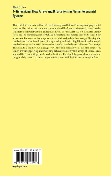 This book introduces to 1-dimensional flow arrays and bifurcations in planar polynomial systems. The 1-dimensional source, sink and saddle flows are discussed, as well as the 1-dimensional parabola and inflection flows. The singular source, sink and saddle flows are the appearing and switching bifurcations for simple sink and source flow arrays and for lower-order singular source, sink and saddle flow arrays. The singular parabola and inflection flows are the appearing and switching bifurcations for simple parabola arrays and also for lower-order singular parabola and inflection flow arrays. The infinite-equilibriums in single-variable polynomial systems are also discussed, which are the appearing and switching bifurcations of hybrid arrays of source, sink, and saddle flows with parabola and inflections. This book helps readers understand the global dynamics of planar polynomial systems and the Hilbert sixteen problem.