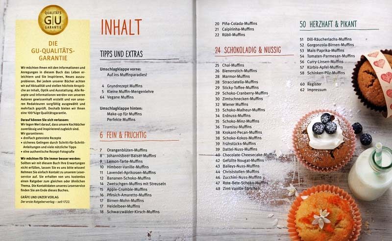 Alle lieben Muffins - und das Beste ist: Jeder kann sie backen! Der Teig ist in null Komma nichts zusammengerührt, und man muss sich nicht lange gedulden, um die duftenden Küchlein aus dem Ofen zu holen. Kein Wunder, dass Muffins trotz all der kleinen süßen Konkurrenz ganz oben auf der Back-Hitliste stehen. Wie kunterbunt es in der Welt der verführerischen Minis zugeht, beweist der GU-Küchenratgeber 1 Form - 50 Muffins: Ob saftige Heidelbeer-Muffins, schokosatte Stracciatella-Muffins oder knusprige Krokant-Muffins, hier finden Fans reichlich Futter, um sich glücklich zu backen. Für Überraschung auf dem Kuchenteller sorgen Sacher- und Bienenstich-Muffins, die es locker mit ihren großen Verwandten aufnehmen können. Wer es lieber pikant mag, der hat an Gorgonzola-Muffins oder Linsen-Muffins seine helle Freude. Und wem das noch immer nicht reicht, der kreiert einfach seinen ganz persönlichen Lieblings-Muffin - mit der Muffin-Mengenlehre ist das auch für Backanfänger kein Problem!