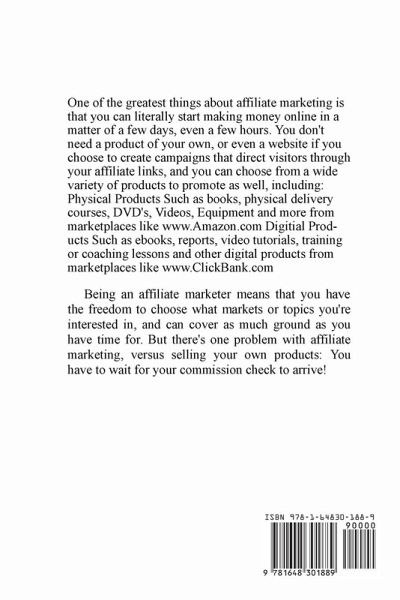 One of the greatest things about affiliate marketing is that you can literally start making money online in a matter of a few days, even a few hours. You don't need a product of your own, or even a website if you choose to create campaigns that direct visitors through your affiliate links, and you can choose from a wide variety of products to promote as well, including: Physical Products Such as books, physical delivery courses, DVD's, Videos, Equipment and more from marketplaces like www.Amazon.com Digitial Products Such as ebooks, reports, video tutorials, training or coaching lessons and other digital products from marketplaces like www.ClickBank.com Being an affiliate marketer means that you have the freedom to choose what markets or topics you're interested in, and can cover as much ground as you have time for. But there's one problem with affiliate marketing, versus selling your own products: You have to wait for your commission check to arrive!