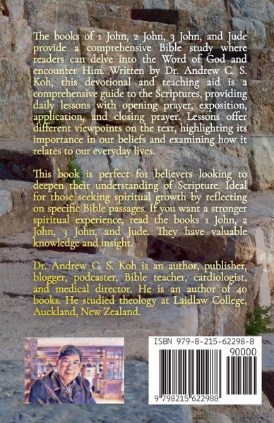 1 John, 2 John, 3 John, and Jude is an in-depth Bible study that offers readers the opportunity to explore the Word of God and encounter its God. Written by Dr. Andrew C. S. Koh, this devotional and teaching aid is a comprehensive guide to the Scriptures, providing daily lessons with opening prayer, exposition, application, and closing prayer. Each lesson provides a unique perspective on the text, emphasizing its place in our faith and exploring its relevance to daily life. This book is perfect for believers looking to deepen their understanding of Scripture. It is an ideal companion for individuals who want to grow in their faith by reflecting on a particular passage of the Bible. For those who are seeking a deeper spiritual experience, 1 John, 2 John, 3 John, and Jude is an invaluable source of knowledge and insight. Featuring study questions, personal reflections, and an engaging examination of the Word of God, this book provides a comprehensive guide to uncovering the divine message. Comparable to popular works such as Bible Study for Beginners by R. T. Kendall and The Jesus Bible Study by Jack Kuhatschek, 1 John, 2 John, 3 John, and Jude is an accessible and informative source for those wanting to understand the Bible better. For readers looking to experience a deeper connection with the Word of God, 1 John, 2 John, 3 John, and Jude is an essential guide. Through this verse-by-verse Bible study, readers can open their hearts and minds to the power of the Scriptures and find a true spiritual connection.