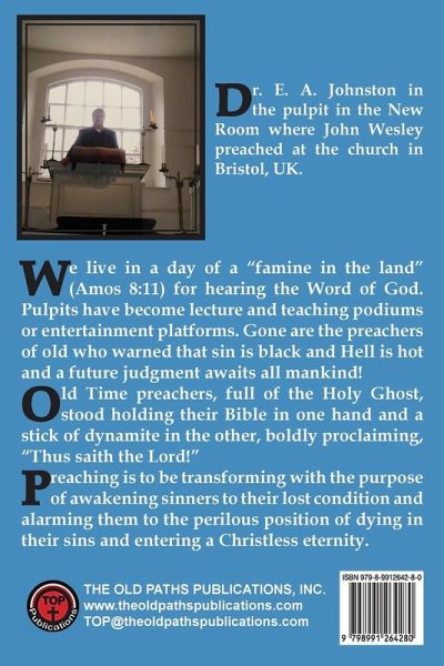 "We live in a day of a "famine in the land" (Amos 8:11) for hearing the Word of God. Pulpits have become lecture and teaching podiums or entertainment platforms. Gone are the preachers of old who warned that sin is black and Hell is hot and a future judgment awaits all mankind! Old Time preachers, full of the Holy Ghost, stood holding their Bible in one hand and a stick of dynamite in the other, boldly proclaiming, "Thus saith the Lord!" Preaching is to be transforming with the purpose of awakening sinners to their lost condition and alarming them to the perilous position of dying in their sins and entering a Christless eternity."