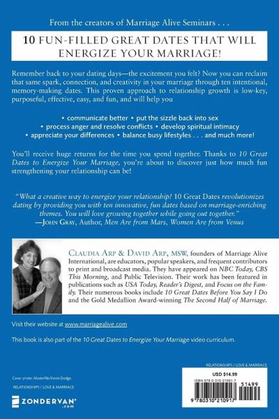10 Great Dates revolutionizes dating by providing you with 10 innovative 'Great Dates' based on marriage enriching themes guaranteed to energize your relationship with fun, friendship, and romance. Use the book alone for your great dates or along with the 10 Great Dates DVD.