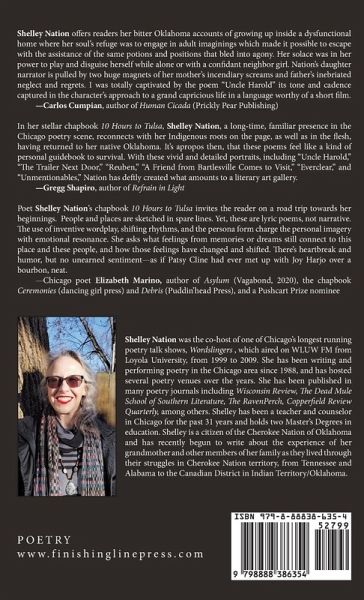 Shelley Nation was the co-host of one of Chicago's longest running poetry talk shows, Wordslingers , which aired on WLUW FM from Loyola University, from 1999 to 2009. She has been writing and performing poetry in the Chicago area since 1988, and has hosted several poetry venues over the years. She has been published in many poetry journals including Wisconsin Review, The Dead Mule School of Southern Literature, The RavenPerch, Copperfield Review Quarterly, among others. Shelley has been a teacher and counselor in Chicago for the past 31 years and holds two Master's Degrees in education. Shelley is a citizen of the Cherokee Nation of Oklahoma and has recently begun to write about the experience of her grandmother and other members of her family as they lived through their struggles in Cherokee Nation territory, from Tennessee and Alabama to the Canadian District in Indian Territory/Oklahoma.
