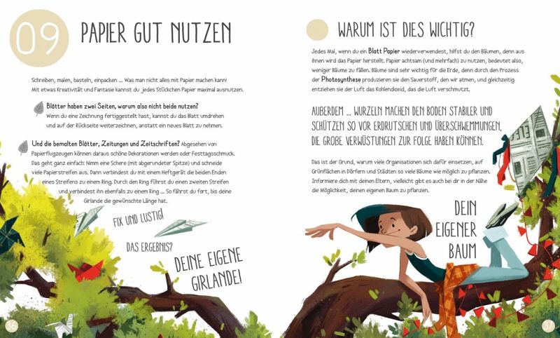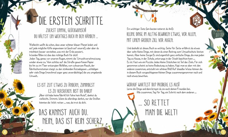 Eine Bienen-Oase anlegen. Lokale und saisonale Produkte verspeisen. Geräte ausschalten und Energie einsparen. Kreativ recyceln: Seite für Seite kannst du in diesem lustig gestalteten Buch praktische Ideen entdecken, mit denen du unkompliziert und aktiv zu einer lebenswerteren Umwelt beiträgst. Hier findest du 10 kleine, aber nachhaltige Aktionen, in denen sich Kinder deines Alters jeden Tag zu Hause, in der Schule, in ihrer Stadt engagieren und nach und nach große Veränderungen bewirken können. Dazu gibt es für dich spannendes Hintergrundwissen. Umweltschutz gelingt, wenn alle mitmachen und mitmachen ist gar nicht so schwer!