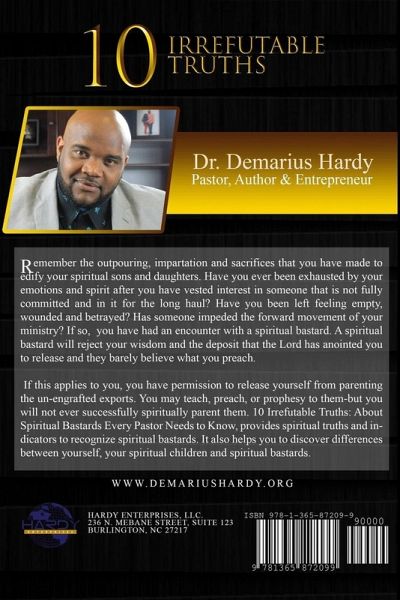 Remember the outpouring, impartation and sacrifices that you have made to edify your spiritual sons and daughters. Have you ever been exhausted by your emotions and spirit after you have vested interest in someone that is not fully committed and in it for the long haul? Have you been left feeling empty, wounded and betrayed? If so you have had an encounter with a spiritual bastard. They barely believe what you preach. If this applies to you, you have permission to release yourself from parenting the un-engrafted exports. 10 Irrefutable Truths: About Spiritual Bastards Every Pastor Needs to Know, provides spiritual truths and indicators to recognize spiritual bastards. It also helps you to discover a mends between yourself, your spiritual children and spiritual bastards. It also offers specific and clear actions for you to recognize spiritual bastards and to apply in ministry and every area of your life.
