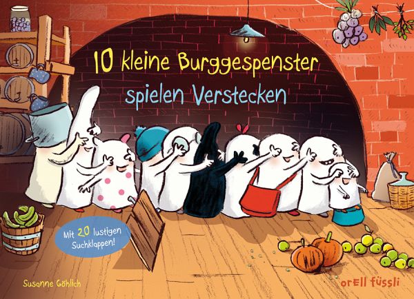 Wenn 10 kleine Burggespenster mit ihrem Hündchen Chilli Verstecken spielen, dann wird jeder Winkel der alten Ritterburg genau unter die Lupe genommen. Vom Hühnerstall und Keller bis zu den Dachzinnen bleibt kein Winkel unerforscht. Doch so sehr sich die Gespenster auch anstrengen, erst ganz zum Schluss gelingt es ihnen, das Hündchen zu finden. Am Ende war das Versteck viel einfacher als gedacht. Doch dann drehen die Gespenster den Spieß um und verstecken sich selbst. Das Hündchen ist ratlos. Wo können seine Freunde nur sein? Erst wenn man auf der letzten Seite die Zugbrücke herunterklappt, tauchen alle zehn Gespenster wieder auf, und es gibt für alle einen großen Kuchen als Belohnung.