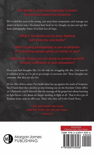 INTRODUCTION:I Have a Confession MY STORY: How I Went from Living a Lie to a Life Worth Living KNOW THINE ENEMY: You Have a Very Real Adversary LIE #1: My Pornography Addiction Defines Who I Am LIE #2: I Am Alone in My Struggle with Pornography Addiction LIE #3: My Pornography Addiction is About Fulfilling My Sexual Desires LIE #4: I Can Compensate for My Pornography Addiction by Doing Enough Good in Other Areas LIE #5: My Pornography Addiction Separates Me from God's Love LIE #6: I'm Strong Enough to Control My Pornography Addiction on My Own . LIE#7: Jesus Can Set Others Free from Pornography Addiction, but Not Me LIE#8: Holding on to Unforgiveness Has No Effect on My Pornography Addiction LIE#9: I Must Shut Down My Desires if I Want to Be Free from Pornography LIE #10: God Can No Longer Use Me Because of My Pornography Addiction CONCLUSION: Where Do You Go from Here?