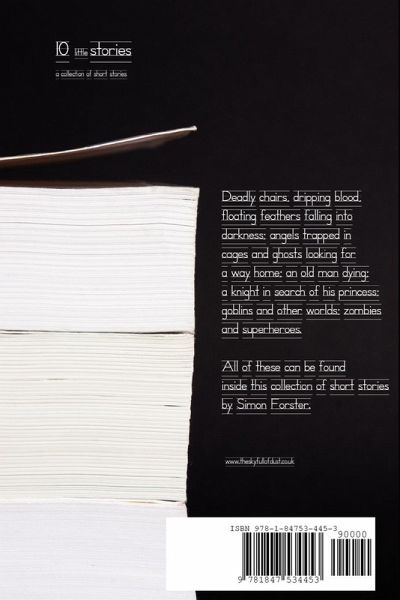 Deadly chairs, dripping blood, floating feathers falling into darkness; angels trapped in cages and ghosts looking for a way home; an old man dying; a knight in search of his princess; goblins and other worlds; zombies and superheroes. All of these can be found inside this collection of short stories by Simon Forster.