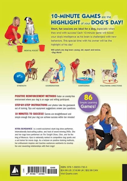 Kyra Sundance is a world-renowned dog trainer, lecturer, and internationally best-selling author of 101 Dog Tricks: Step by Step Activities to Engage, Challenge, and Bond with Your Dog. With over a million copies in print, Kyra’s award-winning books, kits, and videos have inspired dog owners worldwide to develop fun and rewarding relationships with their dogs. Her other books include Dog Training 101, The Joy of Dog Training, The Dog Tricks and Training Workbook, Kyra’s Canine Conditioning , 51 Puppy Tricks, 10-Minute Dog Training Games, The Pocket Guide to Dog Tricks, and 101 Dog Tricks, Kids Edition. Honed through decades of professional experience, Kyra’s easy step-by-step training methods are the most effective and humane way to train. Her positive methods foster confident, happy dogs who are motivated to do the right thing, rather than fearful of making a mistake. As professional performers, Kyra and her Weimaraners starred in shows for the king of Morocco, Disney’s Hollywood stage shows, circuses, NBA halftime shows, on The Tonight Show, The Ellen DeGeneres Show, Animal Planet, in movies, and in their own television series. Kyra is a professional set trainer for movie dogs, and is nationally ranked in competitive dog sports. She presents workshops around the world on dog tricks and canine conditioning. Kyra is CEO of “Do More With Your Dog!” trick dog titling organization; the “National Trick Dog championships”; and Chair of the “Trick Dog Expo.” Kyra lives in Lancaster, California.