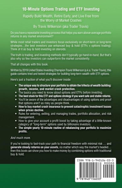 Do you have a repeatable investing process that helps you earn above-average portfolio returns in any market environment? Have you ever wondered why so few retail investors ever manage to outperform the market? And if they try, why do so many fail? The good news is that despite what the mainstream media wants to tell you. Investing is not an impossible or complicated game only the pros can master. The secret to beating the market's long-term performance and avoiding account-crushing losses is enhanced buy-and-hold (ETFs + options trading). Think of it as buy-and-hold investing on steroids. And if you feel nervous when you hear the word "options" - don't worry. The book explains how to use options the way billionaire investors like Warren Buffett and Mark Cuban do. It's a safe and sensible approach to using stocks and options. Here's the reality: Trading and investing methods don't typically go hand-in-hand. Most books focus exclusively either on short-term or long-term strategies. Very few cover these "mixed" methods and techniques for managing investments. But that's also why so few investors can outperform the market consistently. That all changes with this book. Written by 2019 United States Investing Champion Travis Wilkerson (a.k.a. Trader Travis), this guide contains tried and tested strategies for building long-term wealth with ETF options. Here's just a fraction of what you'll discover inside:The difference between call and put options and the basics you need to know about options and ETFs before investing. The best stock for this ETF and options strategy if you want safe and stable returns. The unique way to structure your portfolio to obtain the trifecta of wealth building: growth, income, and market crash protection. We shatter the myth that options buying does not work and reveal two common reasons why investors fail when buying options. How to buy market crash insurance to prevent catastrophic investment losses when prices decline. You'll be aware of the advantages and disadvantages of using options and proof that options aren't as risky as people think. How to give your account a profit boost by taking advantage of a little-known category of "long-term" options used by billionaire investors. Rules for entering, exiting, managing trades, portfolio allocation, and risk management. Examples of how the blueprint worked in the previous bull market and the market crash of 2022. How to avoid the pitfalls common to first-time options traders. The simple yearly 10-minute routine of rebalancing your portfolio to maximize profits. ...Plus, free video tutorials of this strategy and six extra bonuses. If you're unfamiliar with combining traditional buy-and-hold with options trading, the book walks you through everything step by step. It's all explained in plain English, free from technical jargon-with real examples for all the concepts inside. 10-Minute Options Trading and ETF Investing was written for busy people who don't have the time to sort through hundreds of stock charts daily, looking for trades or investments. People who want high investment returns and protection against market crashes-and also only want to spend a few minutes a year managing their portfolio. So if you're looking to fast-track your path to financial freedom with minimal risk ... and generate steady returns on your assets, no matter which way the market's headed... then this book can show you how to make money by combining options with traditional buy-and-hol