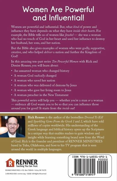 Women Are Powerful and Influential! Women are powerful and influential. But, what kind of power and influence they have depends on what they have inside their hearts. For example, the Bible tells us of women like Jezebel - she was a woman who had no touch of God in her heart and used her influence to destroy her husband, her sons, and her nation. But the Bible also gives examples of women who were godly, supportive, creative, and who helped deliver a nation and further the Kingdom of God! In this amazing ten-part series Ten Powerful Women with Rick and Denise Renner, you will learn about: An unnamed woman who changed history A woman God radically changed A woman who saved her nation A woman who was delivered of demons by Jesus A woman who gave her living room to Jesus A woman preacher in the New Testament This powerful series will help you - whether you're a man or a woman - embrace all God wants you to be so that you can influence those around you for good! It starts from the inside out!