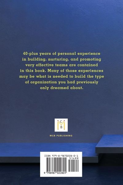 40-plus years of personal experience in building, nurturing, and promoting very effective teams are contained in this book. Many of those experiences may be what is needed to build the type of organization you had previously only dreamed about.